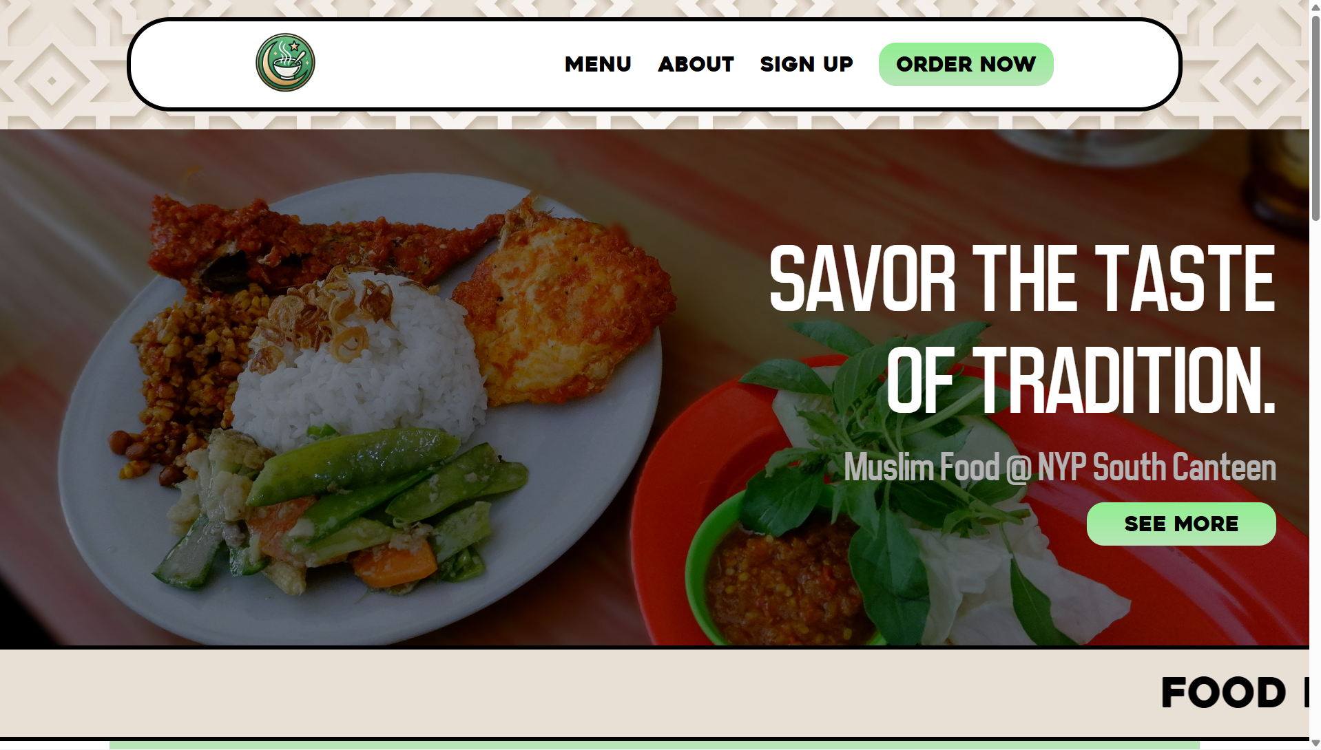 The stall I was assigned to was the Malay-Indian Muslim food stall at the South Canteen. I first started out with the website header and found a suitable image for it.