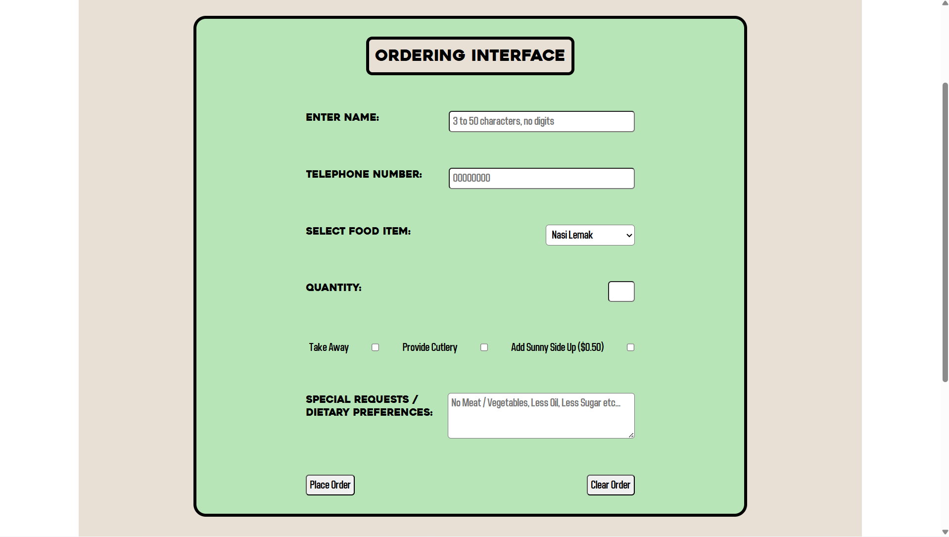 The task was to create a well designed website for one of the food stalls in our school campus.