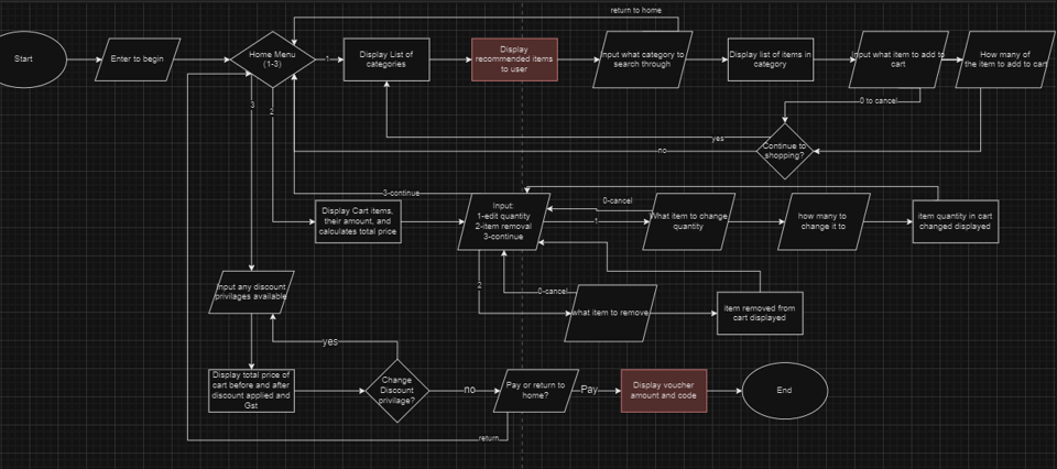 Below is a flowchart of events in our grocery store interface, for further reading you can check out the presentation slides here.