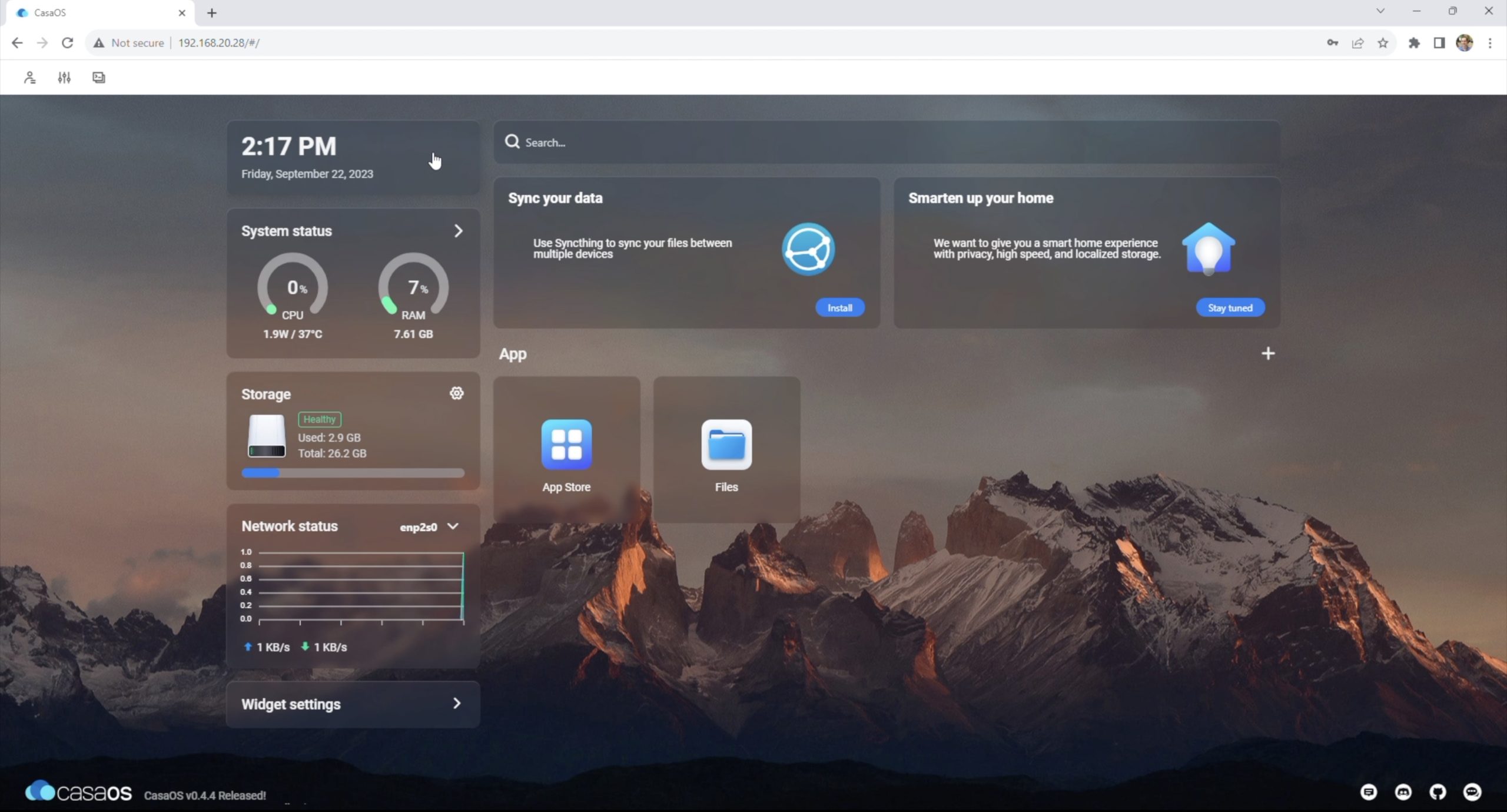 In order to run the server, I needed a dashboard. I used CasaOS as it was easy to use and navigate, and it had a simple modern look.