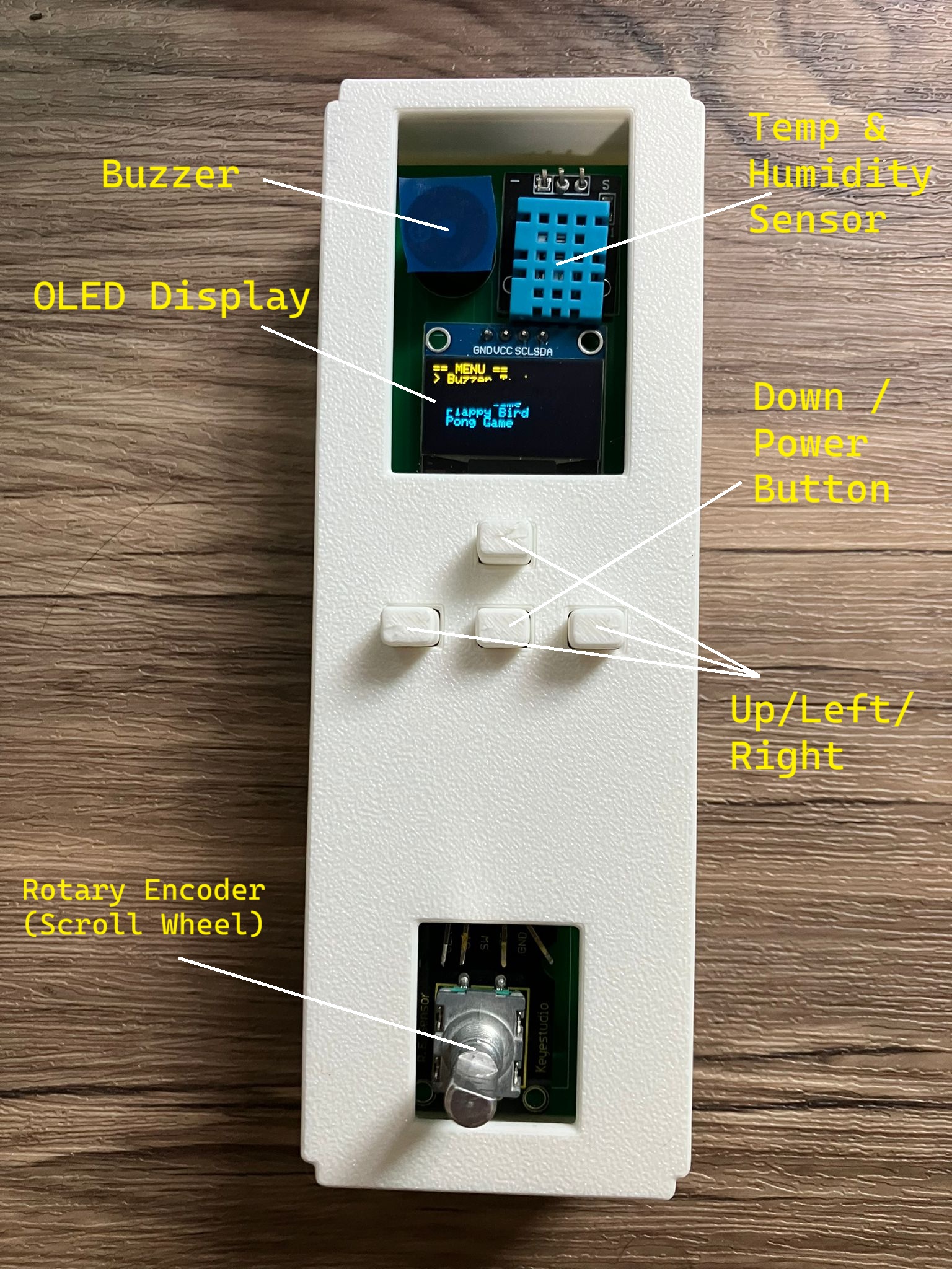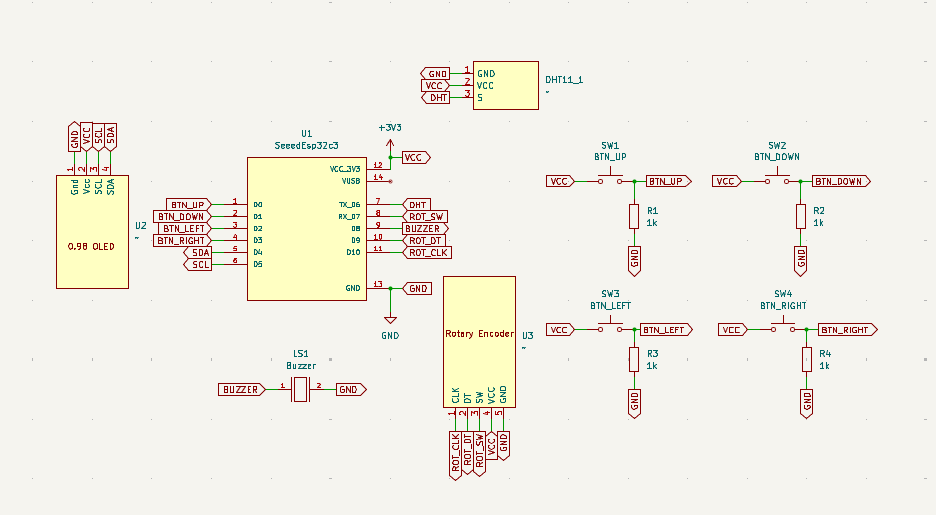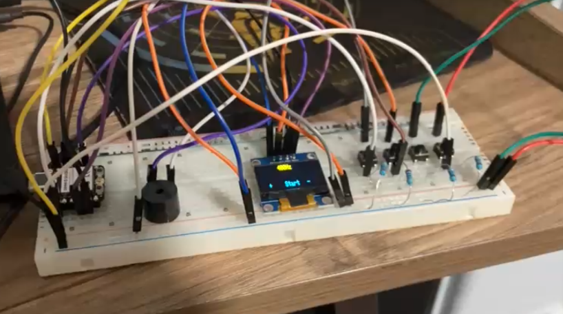 Started out as a simple circuit for the ESP32 using 3 buttons, the OLED display, and a buzzer. The first program it ran was a buzzer frequency test.