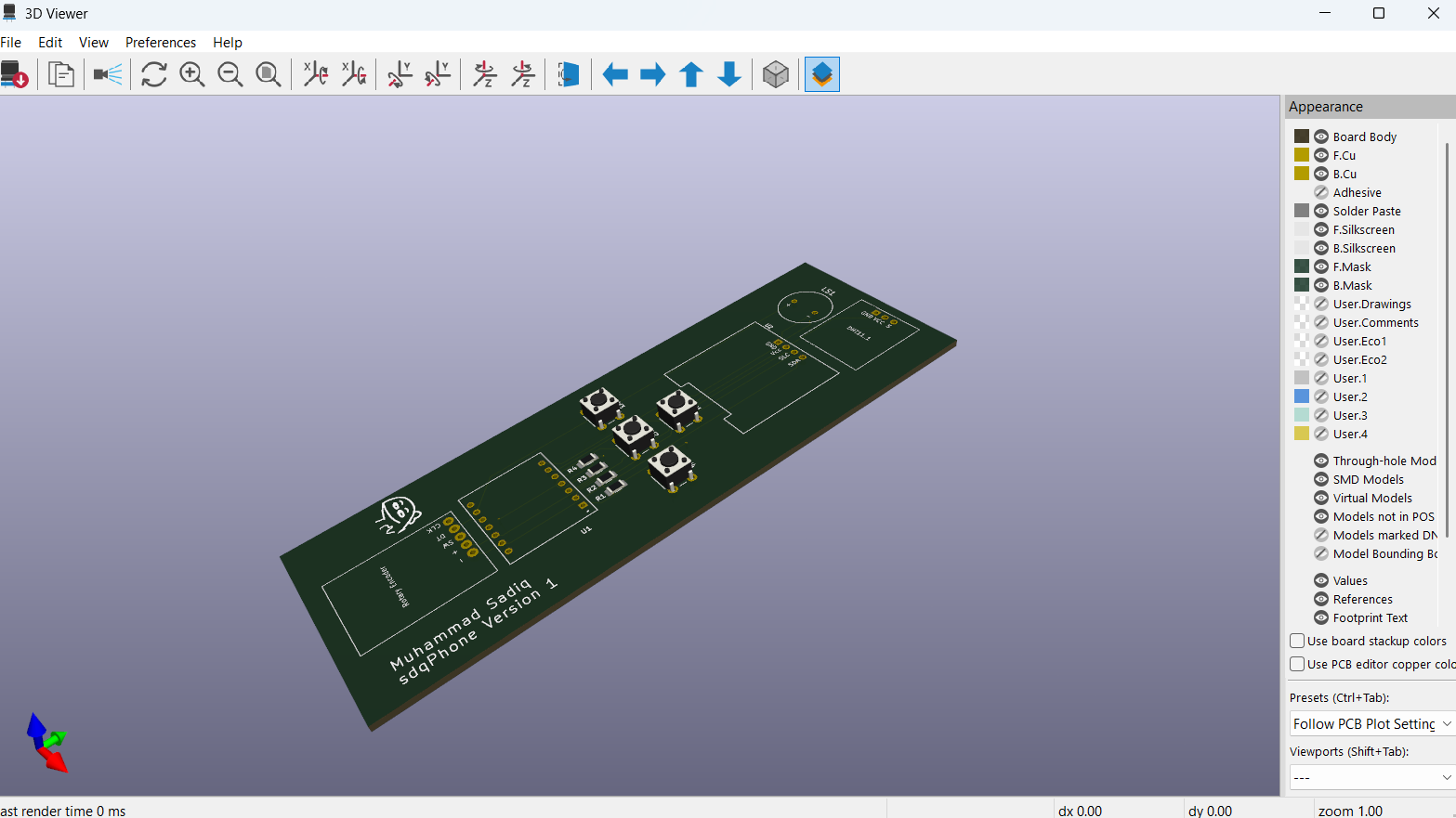 3D View of the PCB: