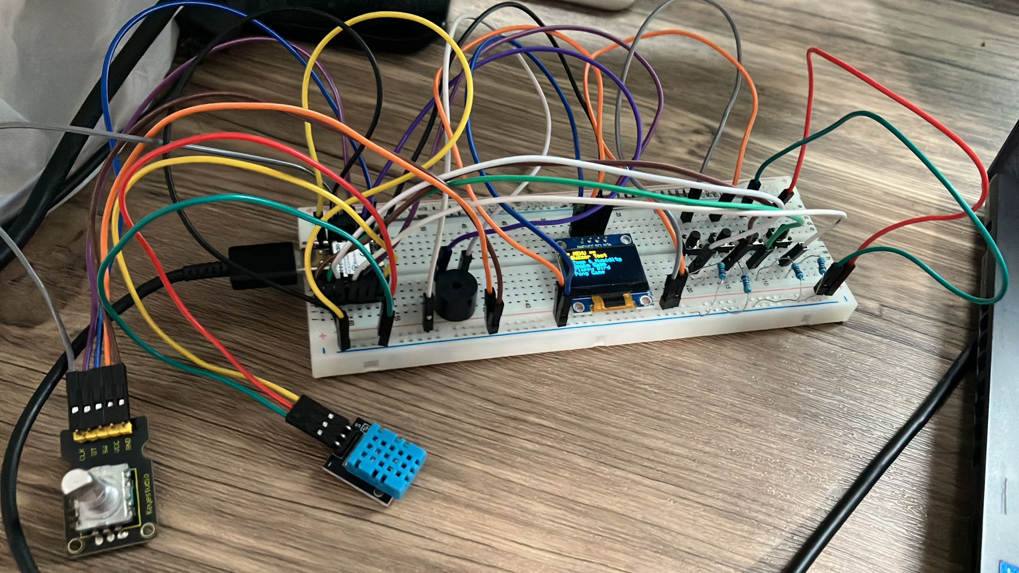 After testing each code individually, I decided to merge all the codes together and be able to switch between them using a menu. This was when I added the rotary encoder to scroll through the menu.