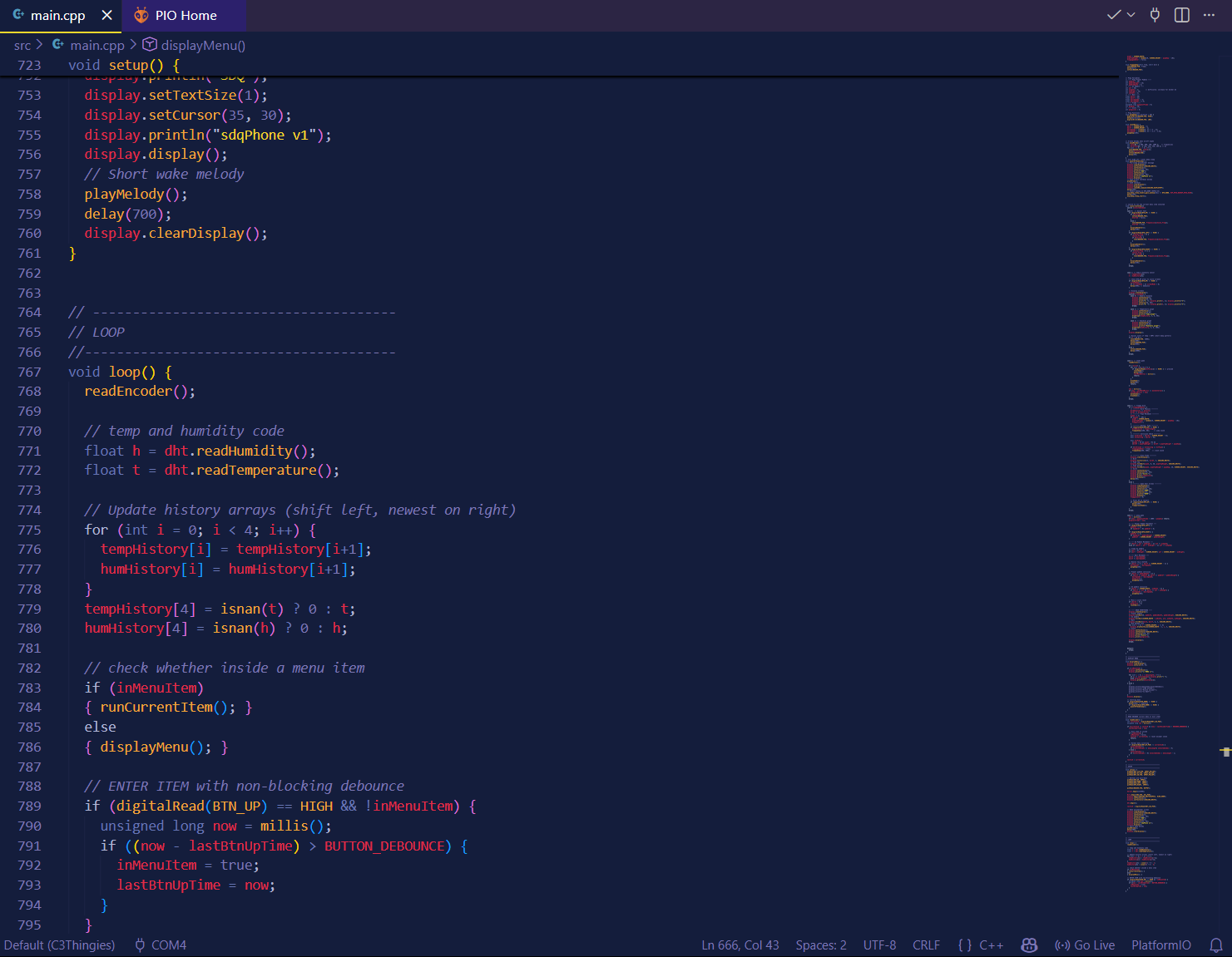 The final version of the code had around 800 lines. This was coded in C++ using PlatformIO on Visual Studio Code. The project code can be downloaded here.